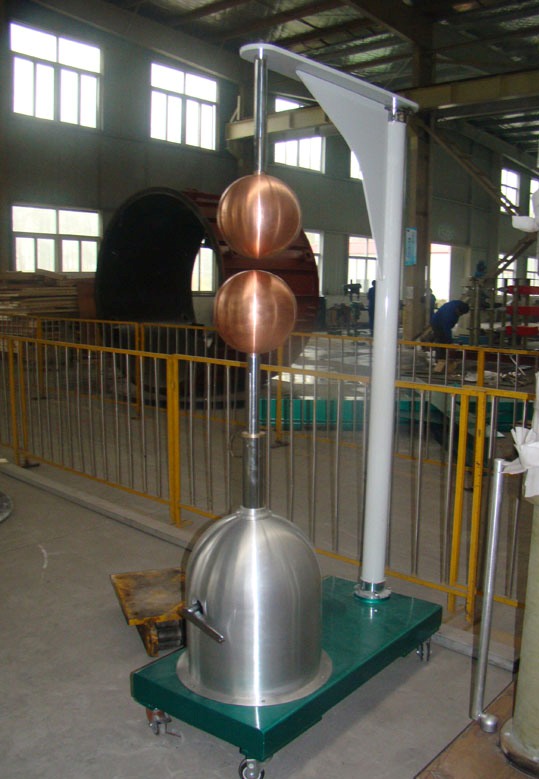 Designed for indoor operation. The measuring spheres are made of highly polished copper with small manufacturing tolerances. In the horizontal design, they are mounted together with the adjusting gear on supporting columns. The adjusting gear consists of a hand-wheel and precision scale for adjustment of the sphere gap (accuracy 0.5 mm).The vertical, motorized design includes the sphere drive placed on the base frame.